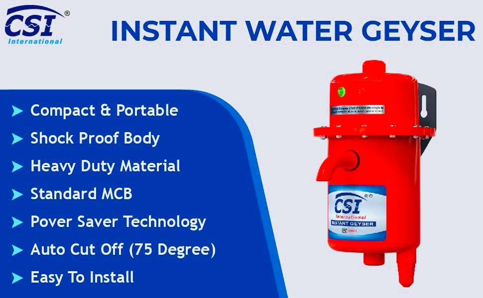 CSI Plate MCB Portable Instant Water Geyser 3000W | ISI Copper Heating Element | Fast Heating for Home, Bathroom, Salon & Kitchen | Model: CSI2273A