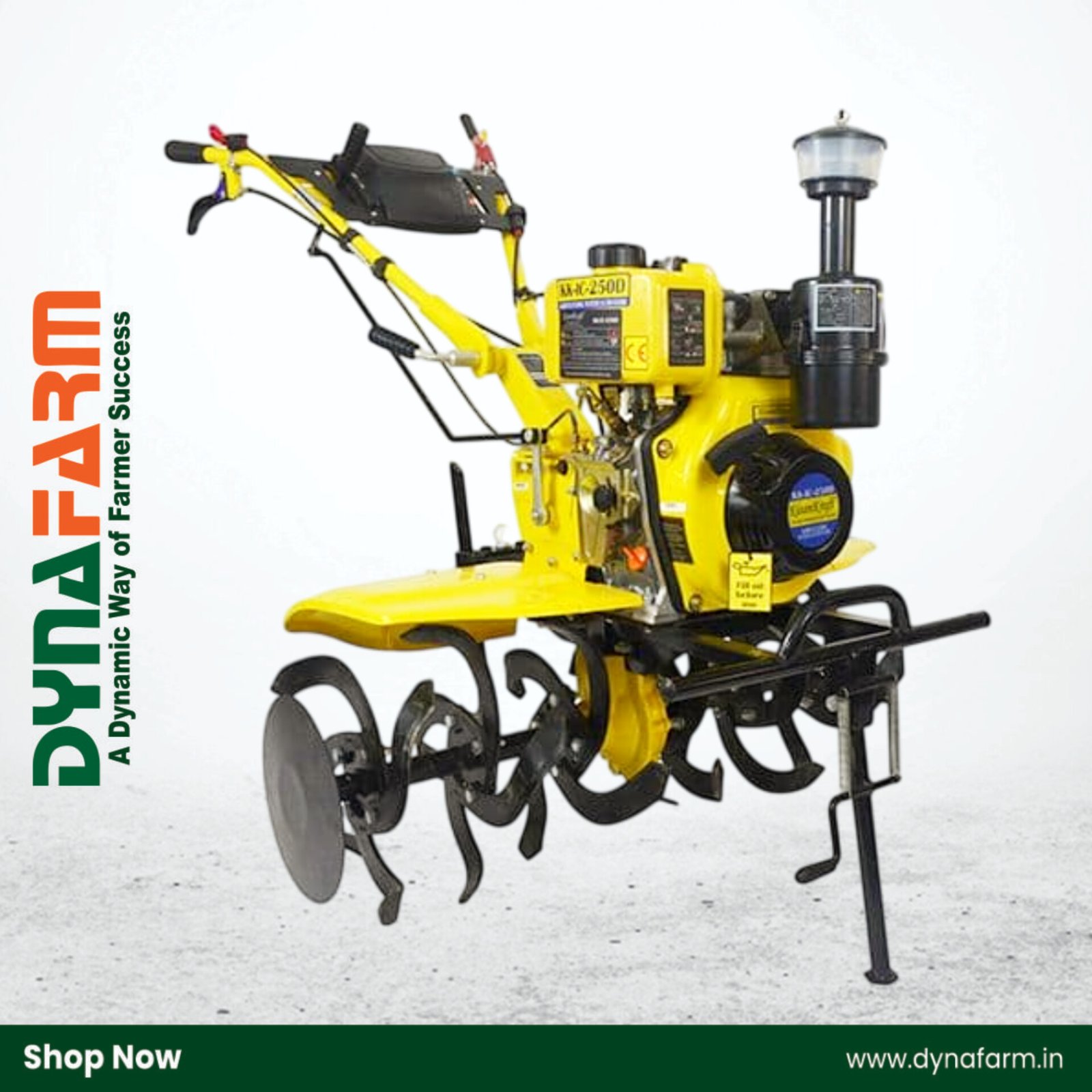 The Agri Intercultivator / Power Rotary Weeder (Diesel) [KK-IC-250D] is a powerful and fuel-efficient agricultural machine designed for continuous and heavy-duty field operations. Powered by a robust diesel engine with recoil start, it delivers high torque and consistent performance, making it ideal for long working hours and tough soil conditions.
