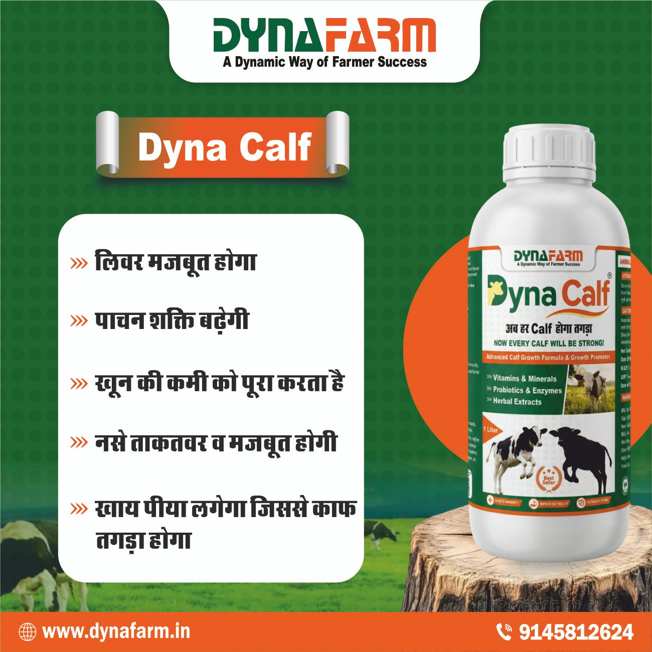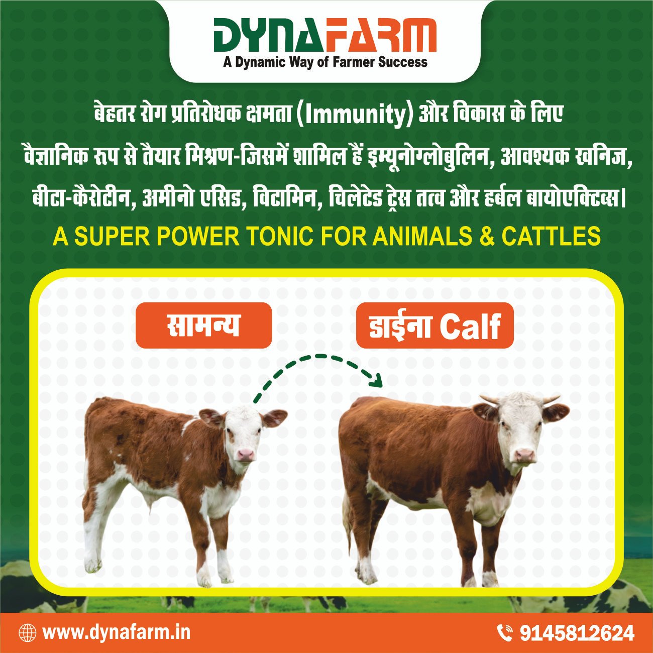 Designed for dairy farms and livestock operations, Dyna Calf works as a reliable calf nutrition formula that complements regular feeding programs. It helps farmers maintain strong, active, and well-developed calves through structured nutritional support.