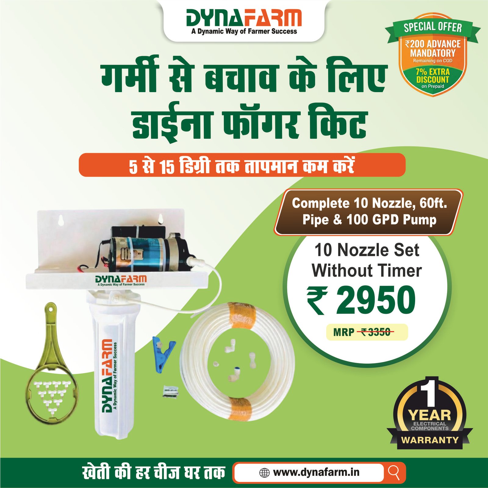 “Dyna Fogger Kit for Dairy Farm | 10 Brass Nozzles Cow Shed Cooling System with Pump, Filter & 60ft Pipe | Mist Cooling System for Cattle Shed”