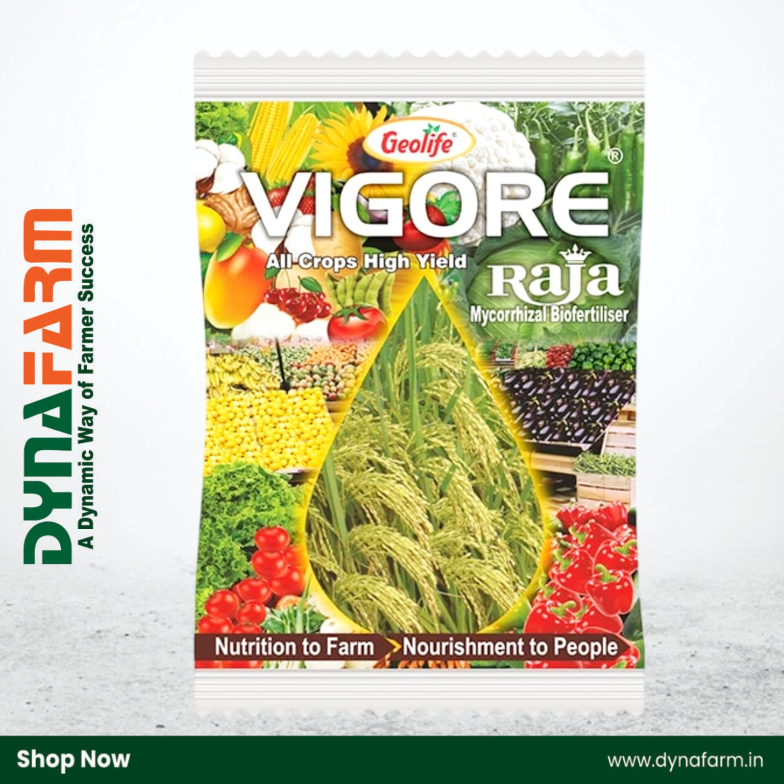 Geolife Vigore ek advanced bio fertilizer hai jo crops ke overall growth, root development aur nutrient utilization ko significantly improve karta hai. Yeh beneficial bio-components ke through soil aur plant dono par kaam karta hai, jisse plant vigor badhta hai, stress tolerance improve hoti hai aur yield me noticeable increase hota hai. Vigore crops ko balanced nutrition ke saath natural growth stimulation provide karta hai.