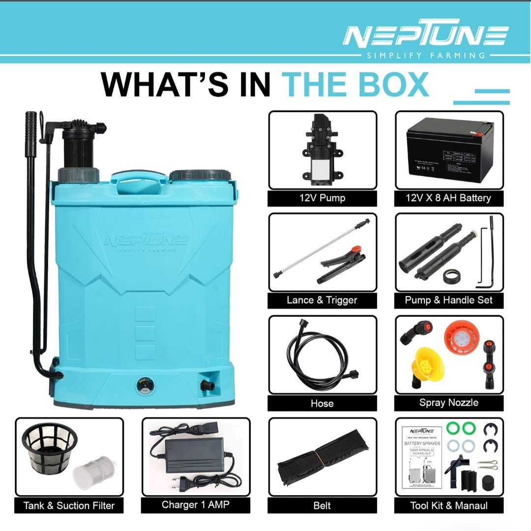 Neptune DK-21 Battery + Manual 2-in-1 | (12V 8Ah Battery | 20L Tank | High Pressure Spray For Agriculture & Garden Use)