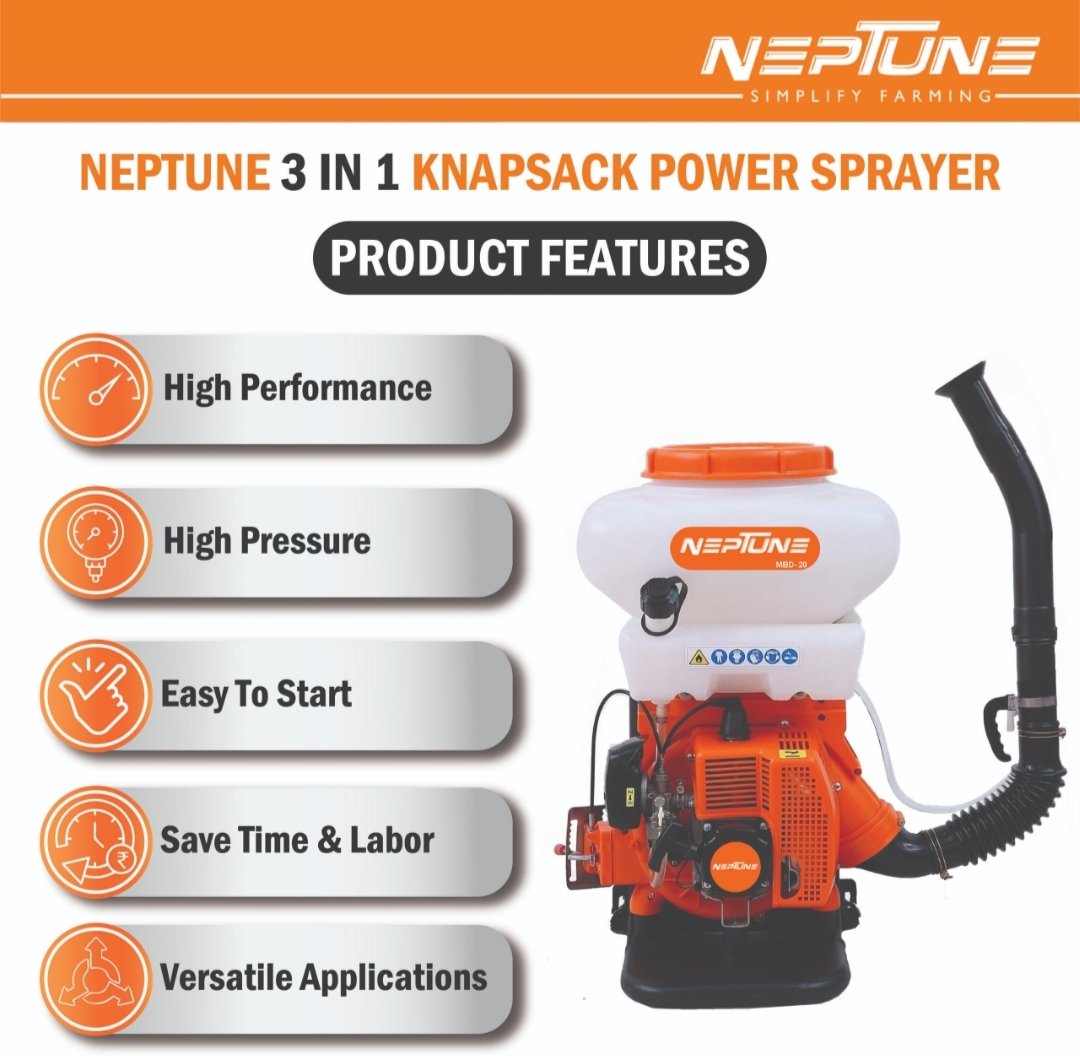 Neptune MBD‑20 2‑in‑1 Knapsack Power Duster Sprayer (43 cc 2-Stroke Petrol Engine • 20 L Tank • Cold Fogger + Powder Duster • Up to 12 m Spray Reach)
