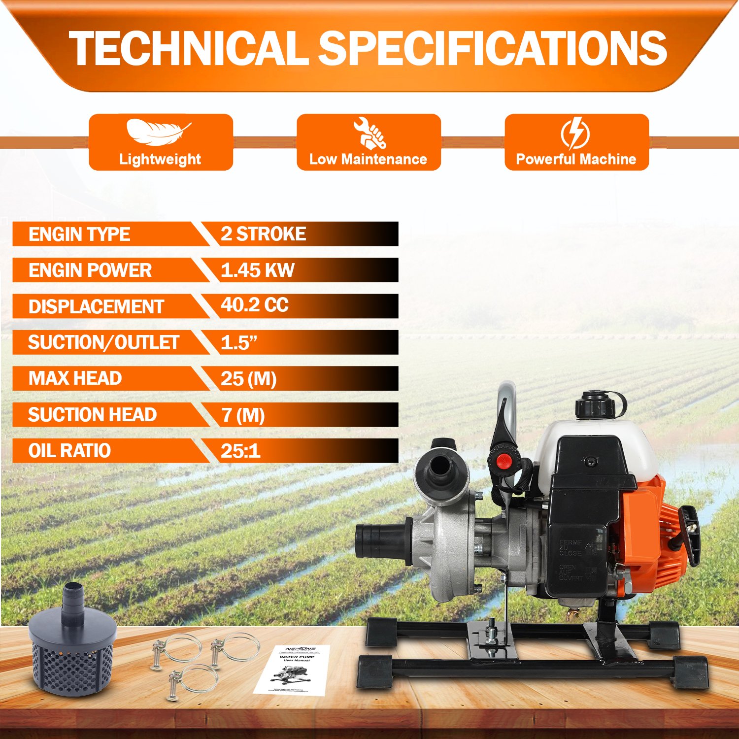 1 × Portable 1.5″ Petrol Water Pump (40 cc engine + pump)