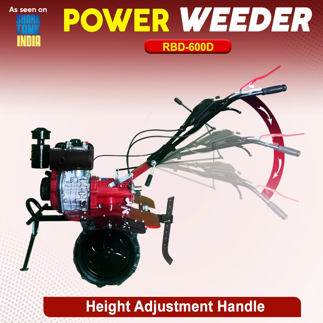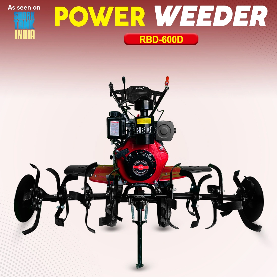 The RBD 6HP Power Weeder Diesel is a robust and efficient field weeding machine designed for large farms, orchards, and vegetable fields. Powered by a durable 6HP diesel engine, this power weeder delivers excellent torque, fuel efficiency, and consistent performance for weed removal, soil aeration, and seedbed preparation. Its heavy-duty build is engineered to withstand tough field conditions, making it an ideal choice for professional farmers seeking reliable, powerful tilling equipment that reduces manual labour and improves productivity.