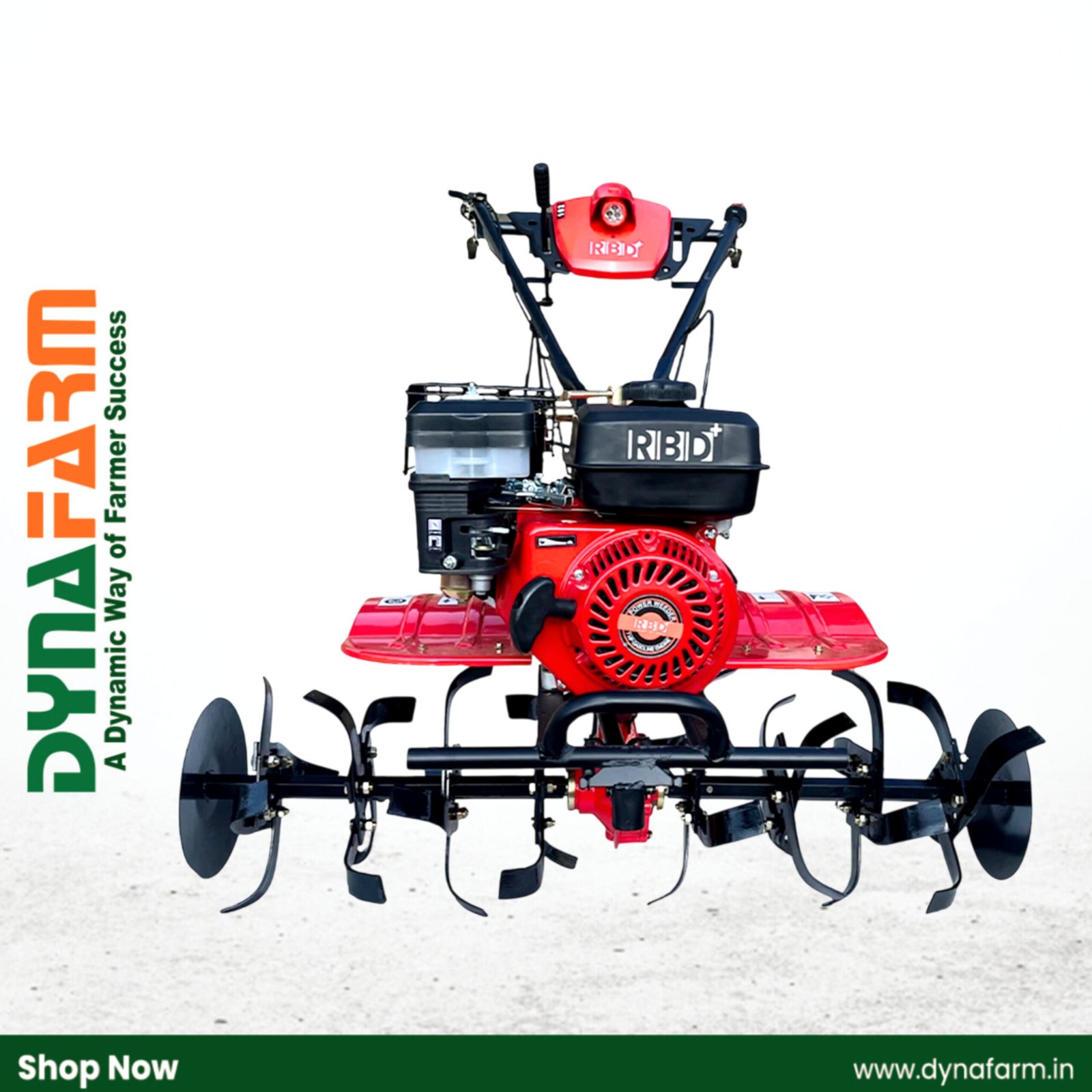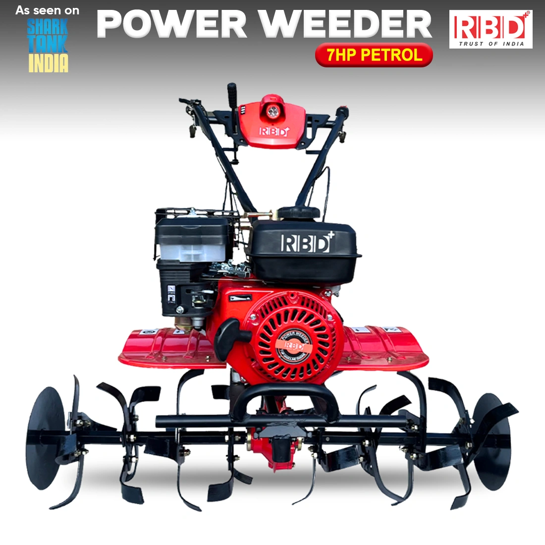 The RBD PT-7HP Power Weeder is a robust and versatile agricultural machine designed for efficient soil preparation, tilling, and field cultivation. Powered by a reliable 7HP engine, it delivers consistent performance to break, loosen, and mix soil with minimal effort. This tiller is ideal for small to medium farms, vegetable gardens, orchards, and plantation fields — helping farmers improve soil aeration, control weeds, and prepare land for sowing or plantation.
