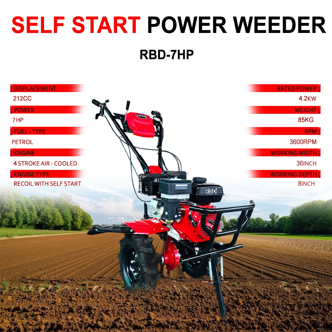 RBD SS-7HP Self-Start Power Weeder – Heavy-Duty 7HP Air-Cooled 4-Stroke Petrol Engine | Easy Start | 2-Year Warranty