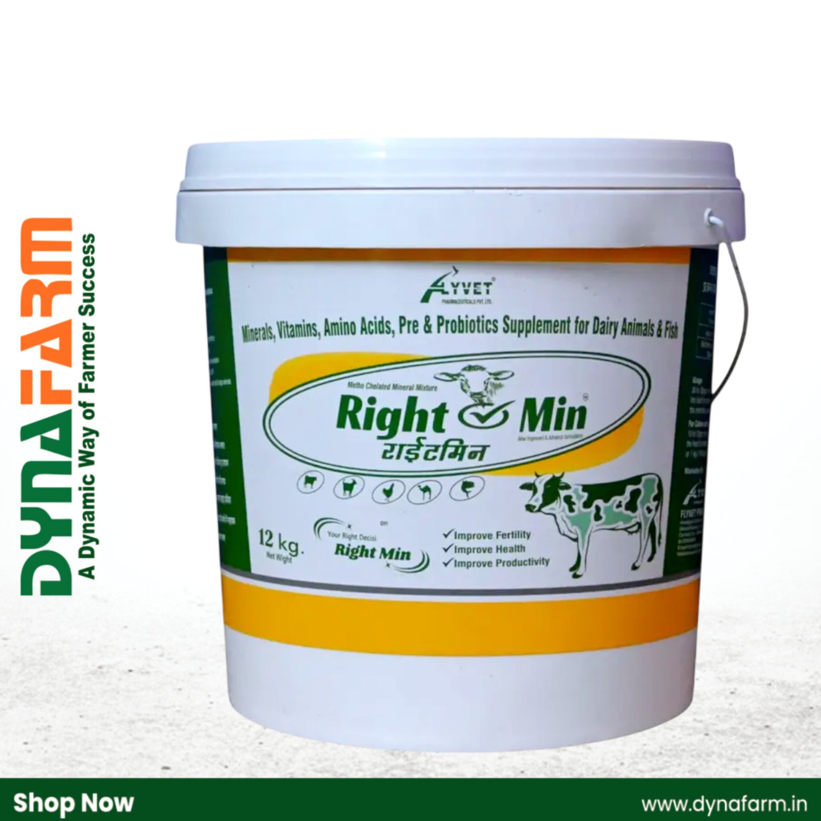 This balanced formulation supports strong bones, improved milk production, better fertility, and enhanced immunity. Regular use of Right Min helps prevent mineral deficiency disorders, improves feed efficiency, and promotes overall animal vitality.