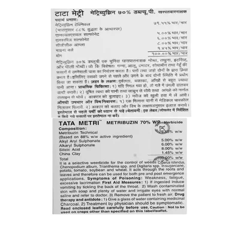 | Chemical Composition | Metribuzin 70% WP |